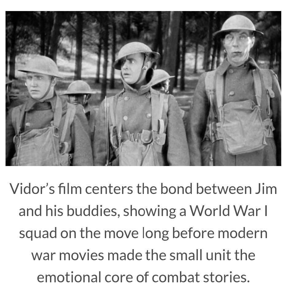 Directed by King Vidor and shaped by Marine veteran Laurence Stallings—who lost a leg at the Battle of Belleau Wood—the film follows Jim Apperson, an average young American who enlists in 1917, fights in France, and returns home permanently changed. The story itself is simple, but the emotional weight was unlike anything audiences had seen before.