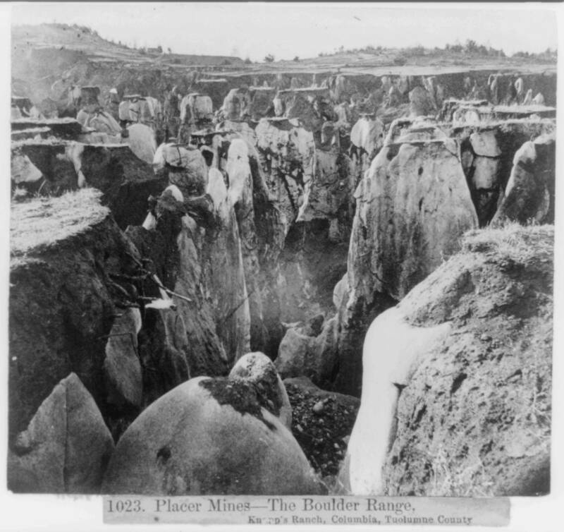 Before long, California’s population grew exponentially, as the news of gold and riches drew people from around the world. By 1849, about 100,000 new people poured into the state. Many pursued placer mining, a method that involves using water to excavate minerals from alluvial or placer deposits. Hydraulic mining was popular as well — until the government banned the high-pressure water method for its negative environmental impact.
