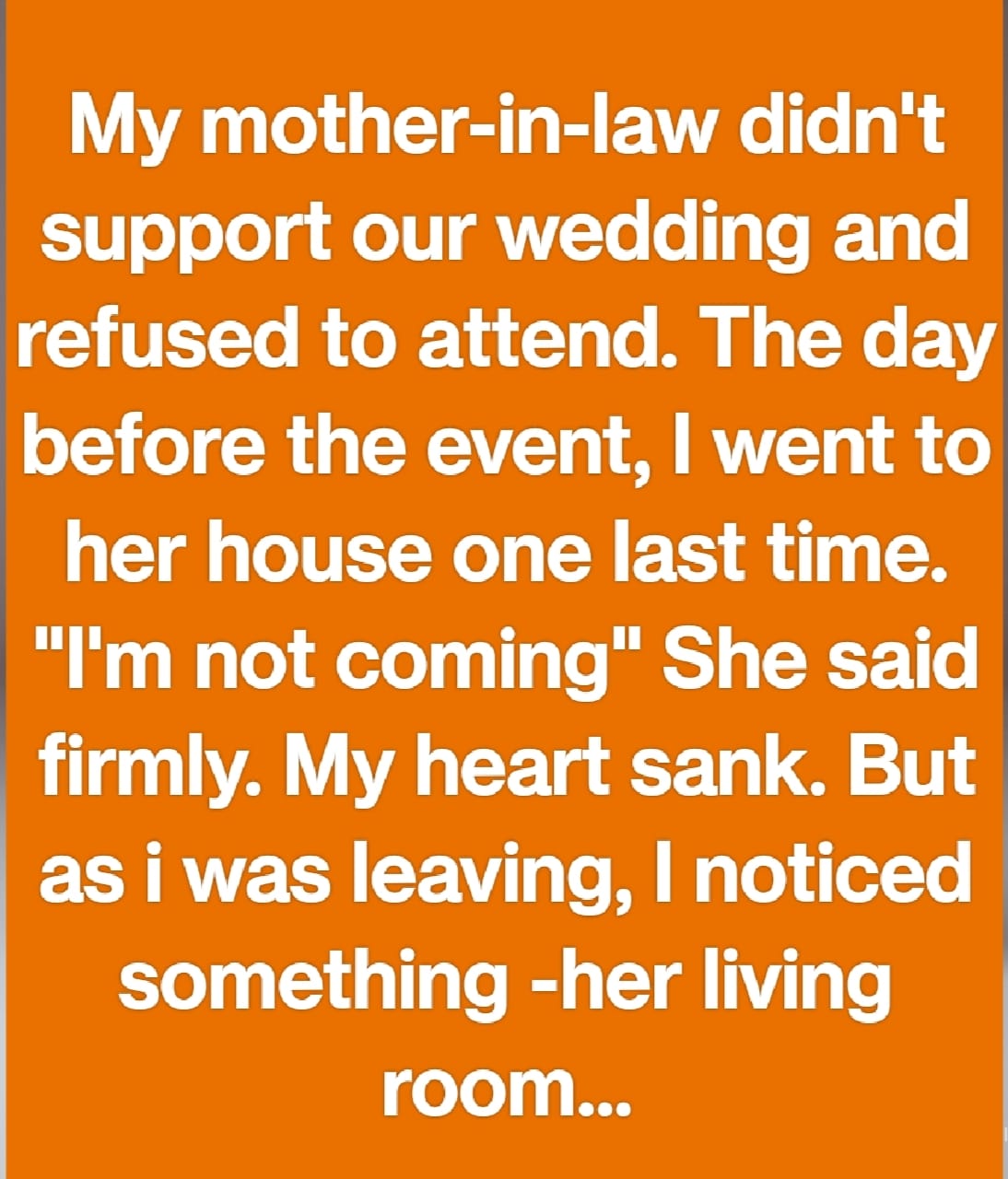 My mother-in-law didn’t support our wedding and refused to attend. The day before the event, I went to her house one last time. “I’m not coming,” she said firmly. My heart sank. But as I was leaving, I noticed something — her living room was completely rearranged, almost like she was preparing for guests.