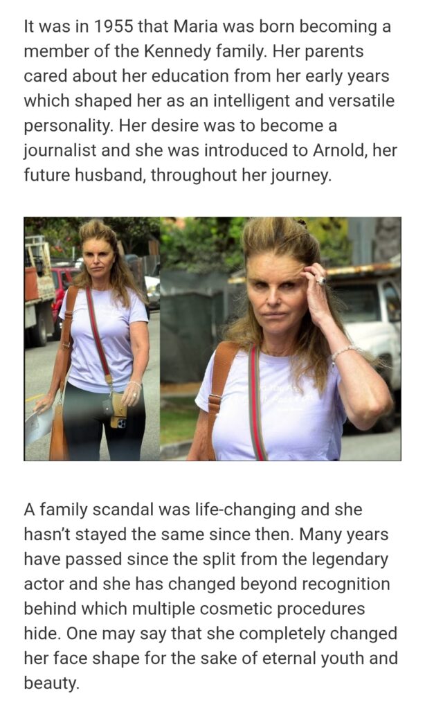 News & Media“Dutch lips , Botched botox” This is what happened to Schwarzenegger’s ex-wife maria Shriver TRENDING STORIES2 months ago01 mins Post navigation Previous: She was once a favorite of millions thanks to her unusual appearance, but has changed dramatically due to plastic surgery.Next: French Cinema Icon Brigitte Bardot Dies at 91 Leave a Reply Cancel replyYour email address will not be published. Required fields are marked *Comment * Name * Email * Website Save my name, email, and website in this browser for the next time I comment.