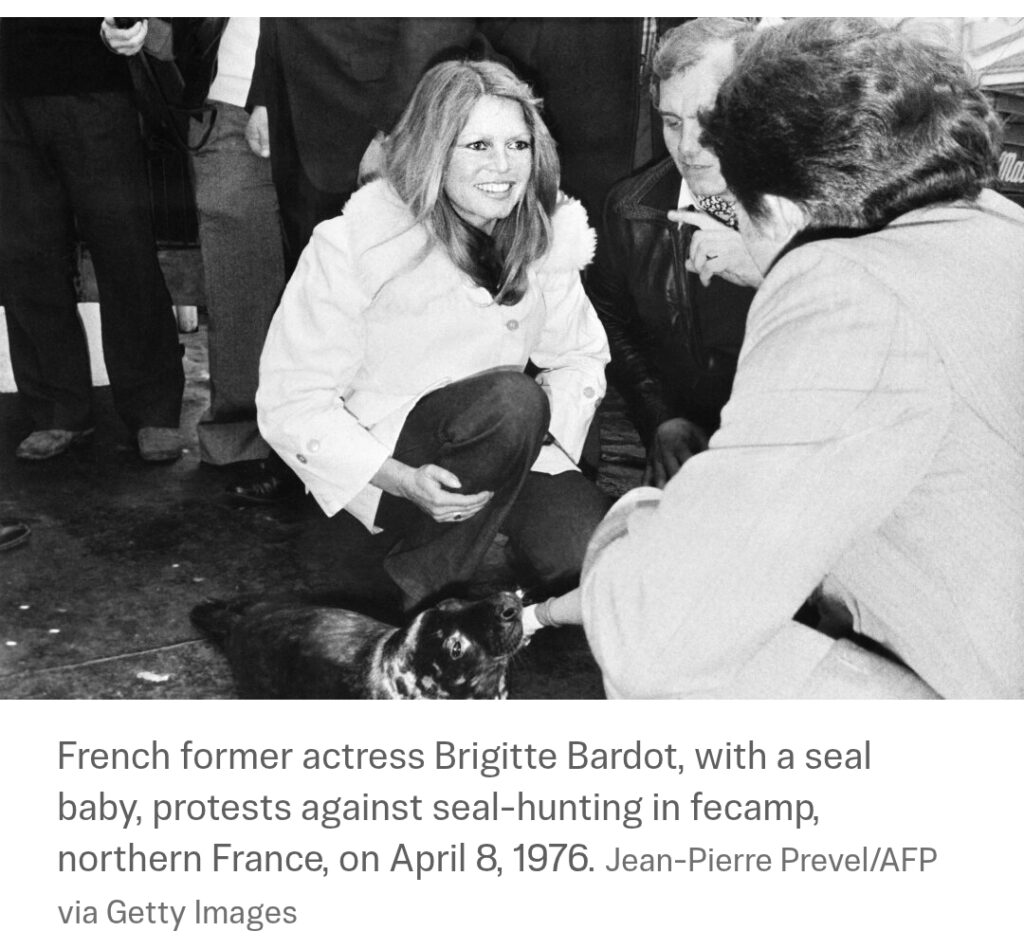 “She traveled to the Arctic ice floes in 1977 to help baby seals, an emblematic act of her fight for the protection of vulnerable species.”