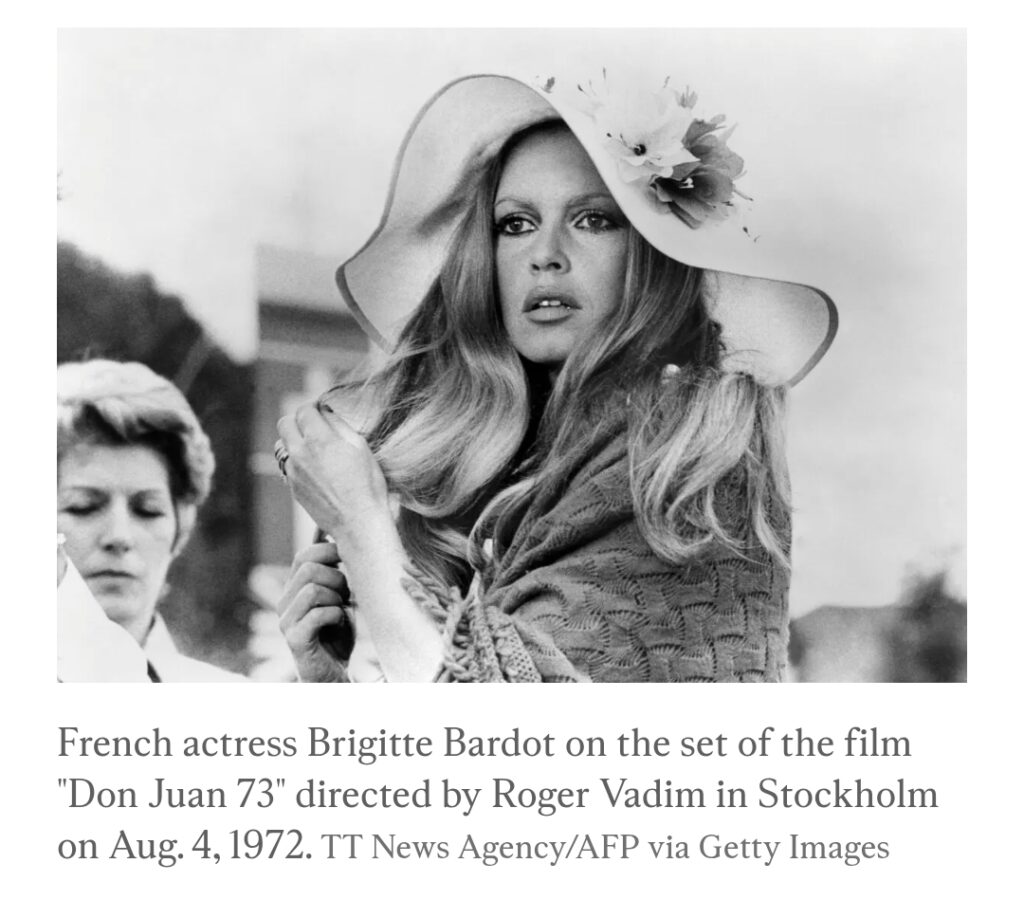 The actress, who was born in Paris, entered the entertainment industry at an early age.Bardot, often nicknamed “B.B.,” became a model as a teenager, posed in the French magazine “Elle,” and appeared in her first film, “Crazy for Love,” in 1952 before starring in American films.Her role as Juliette Hardy in the 1956 film “And God Created Woman,” directed by her then-husband, Roger Vadim, sparked controversy but was a box office success, and it made Bardot an icon.