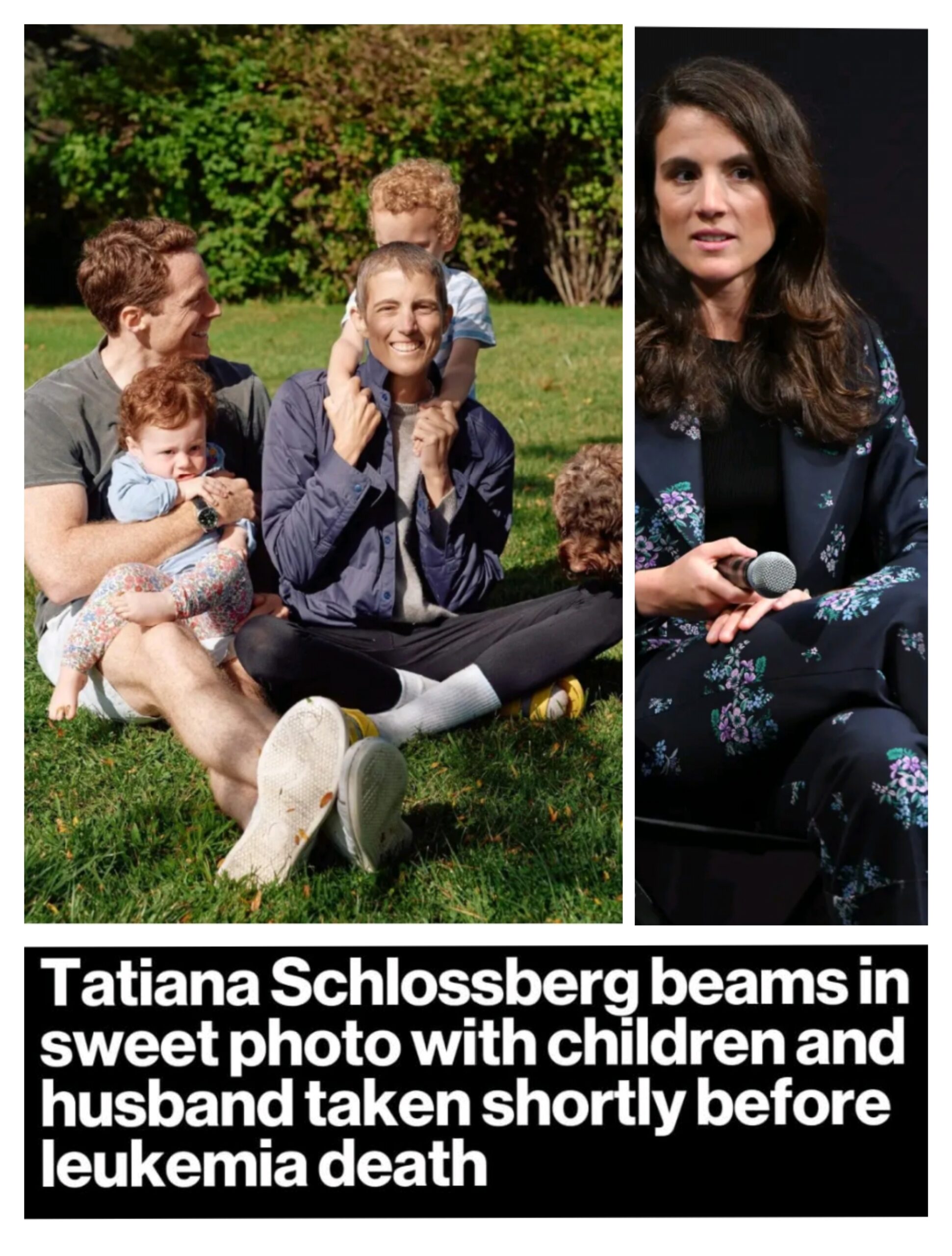 exposes ‘toxic’ celeb mom group filled with…Tatiana Schlossberg remembered by Kennedy family, Joe Biden and more at private NYC funeral Tatiana Schlossberg remembered by Kennedy family, Joe Biden and…Ashley Tisdale was missing from ‘toxic’ mom group’s bougie fall getawayAshley Tisdale was missing from ‘toxic’ mom group’s bougie fall…Celebrity NewsTatiana Schlossberg beams in sweet photo with children and husband taken shortly before leukemia deathBy Bernie ZilioPublished Jan. 5, 2026, 10:04 a.m. ET27Caroline Kennedy’s daughter Tatiana Schlossberg dies00:17/01:32Tatiana Schlossberg beamed in a sweet photo with her children and husband, George Moran, taken shortly before her death from cancer at the age of 35.In the picture, which was posted on Instagram Monday by the JFK Library Foundation, Schlossberg was seen smiling at the camera while sitting on grass with Moran, their 3-year-old son, Edwin, their 1-year-old daughter, Josephine, and their family dog.Moran looked straight at his wife as he flashed a big grin.AdvertisementJosephine sat in his lap, while Edwin stood behind his mom with his arms resting on her shoulders.Tatiana Schlossberg and her husband, George Moran, sitting on grass with their two children and a brown dog.12Tatiana Schlossberg beamed in a sweet photo with her children and husband, George Moran, taken shortly before her death from cancer at the age of 35.jfklibraryfdn/InstagramTatiana Schlossberg at a book signing for her book “Inconspicuous Consumption: The Environmental Impact You Don’t Know You Have.”12The picture was posted on Instagram Monday by the JFK Library Foundation.Getty Images for goopExplore MoreAshley Tisdale was missing from ‘toxic’ mom group’s bougie fall getawayA split image of Elizabeth Hurley in a white bikini.Elizabeth Hurley, 60, channels a Bond girl in nothing but a fur coat and bikini for New Year’s EveNatalie Portman, Leonardo DiCaprio, Jeff RossTrump’s Venezuela operation leaves stars, socialites and nightlife gurus stranded in the CaribbeanAdvertisementThe family was dressed casually for the photo.“As we remember Tatiana and celebrate her life, our hearts are with her family and all who loved her,” the JFK Library Foundation captioned the image.The next slide in the post featured an excerpt from Schlossberg’s 2019 book, “Inconspicuous Consumption: The Environmental Impact You Don’t Know You Have.”“It’s up to us to create a country that takes seriously its obligations to the planet, to each other, and to the people who will be born into a world that looks different than ours has for the last 10,000 years or so,” the excerpt read.AdvertisementJournalist and author Tatiana Schlossberg in a red dress.12Schlossberg was seen smiling at the camera while sitting on grass with Moran, their 3-year-old son, Edwin, their 1-year-old daughter, Josephine, and their family dog.WireImageTatiana Schlossberg holding a microphone.12Moran looked straight at his wife as he flashed a big grin.Getty Images for New York Magazine“…Essentially, what I’m describing is hard work with possibly limited success for the rest of your life. But we have to do it, and at least we will have the satisfaction of knowing we made things better.”The excerpt concluded, “…Come on, it will be fun (?).”AdvertisementSchlossberg died on Dec. 30 after a battle with acute myeloid leukemia.“Our beautiful Tatiana passed away this morning,” the JFK Library Foundation announced via Instagram at the time. “She will always be in our hearts.”Prince William, Jack Kennedy Schlossberg, Tatiana Kennedy Schlossberg, and Caroline Kennedy standing together.12“As we remember Tatiana and celebrate her life, our hearts are with her family and all who loved her,” the JFK Library Foundation captioned the image.AFP via Getty ImagesText from Tatiana Schlossberg’s book “Inconspicuous Consumption” discussing environmental obligations and the hard work required to make things better.12The next slide in the post featured an excerpt from Schlossberg’s 2019 book, “Inconspicuous Consumption: The Environmental Impact You Don’t Know You Have.”jfklibraryfdn/InstagramThe message was signed by her family: “George, Edwin and Josephine Moran [as well as] Ed, Caroline, Jack, Rose and Rory.”In a November 2025 essay for the New Yorker, Schlossberg detailed being diagnosed immediately after giving birth to Josephine in May 2024.The environmental journalist recalled receiving the earth-shattering news, writing, “I did not — could not — believe that they were talking about me,” describing herself as “one of the healthiest people” she knew.Her treatment was intense, as she underwent several rounds of chemotherapy and immunotherapy as well as multiple bone marrow transplants.