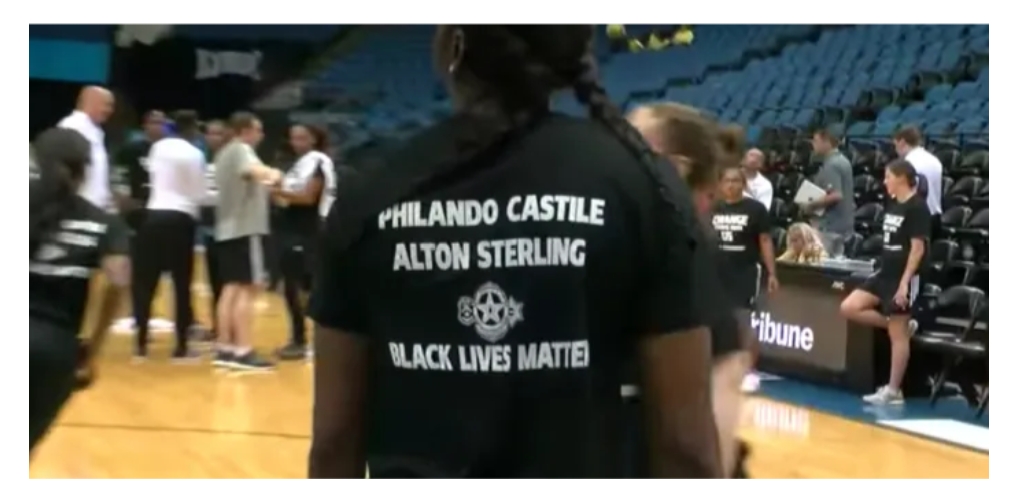 The players were wearing black T-shirts that had the names of two black men who had been shot by police. One name was Philando Castile, a man shot and killed by police during a traffic stop in Minnesota.