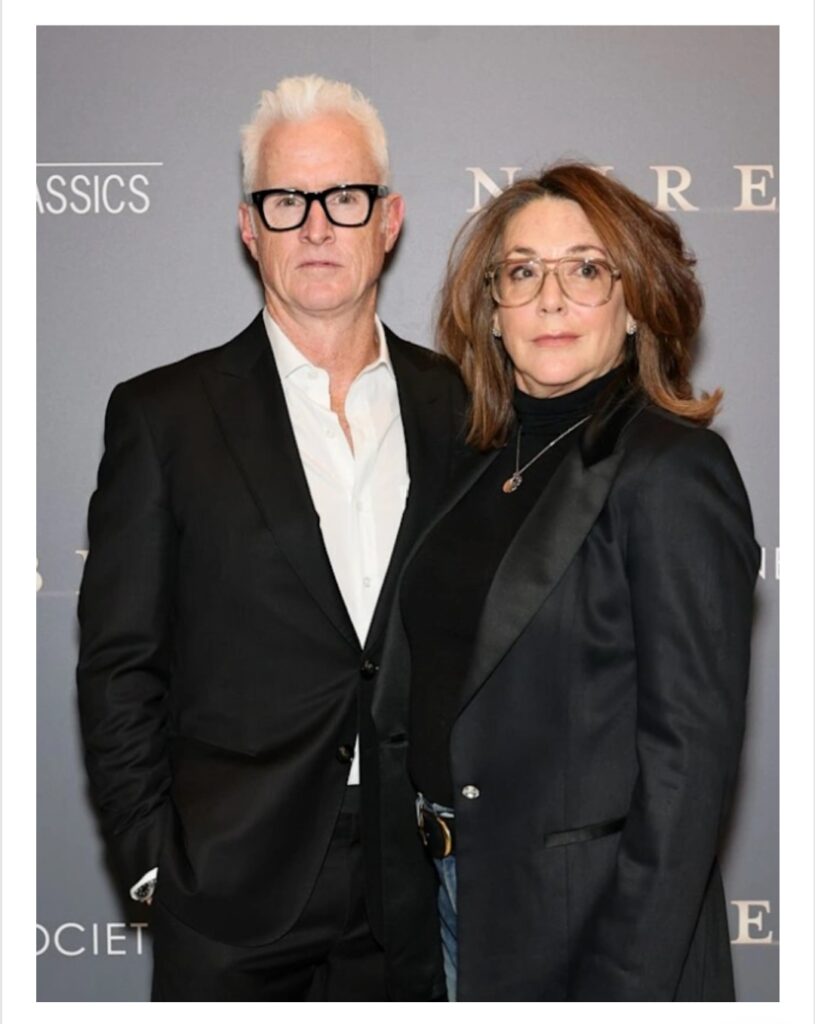 Balsam attended a New York screening of “Nuremberg” at the Museum of Modern Art (MoMA) alongside her husband, actor John Slattery, 63. The couple posed together on the red carpet, offering a rare glimpse into a relationship they have largely kept private for years.