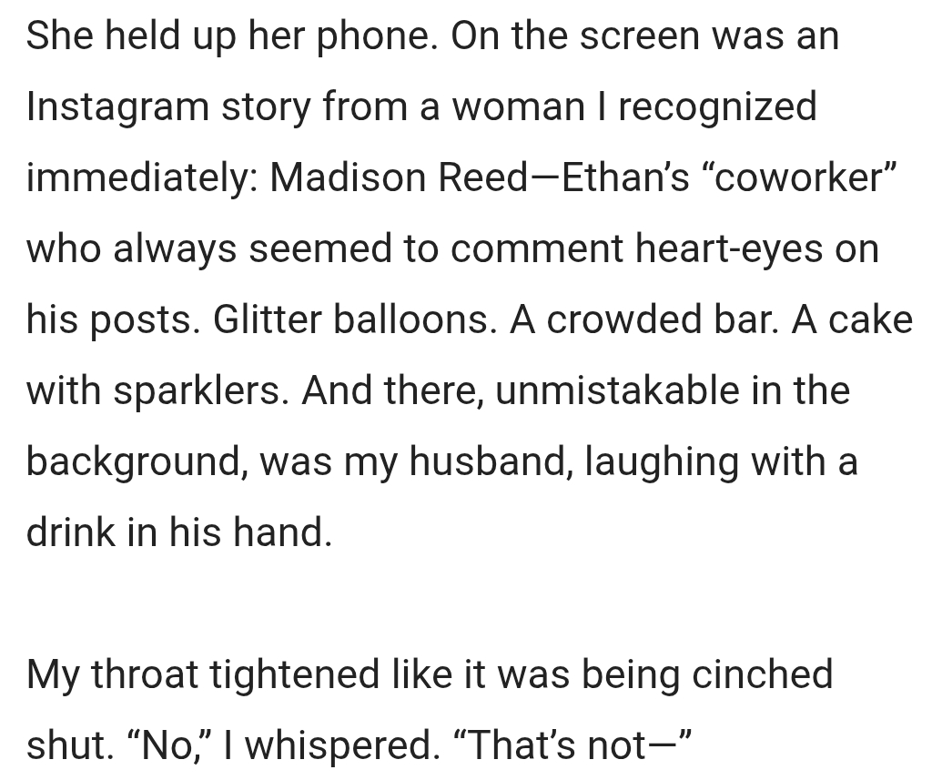 He exhaled sharply. “You’re being dramatic. I’ll come by later, okay?”I didn’t cry. Not yet. I opened Madison’s story again, zoomed in, and saw Ethan’s arm around her waist—his wedding band catching the light like a cruel joke.“You chose candles,” I said, voice low, “instead of a coffin.”“What are you talking about?” he barked, but the edge in his tone cracked.