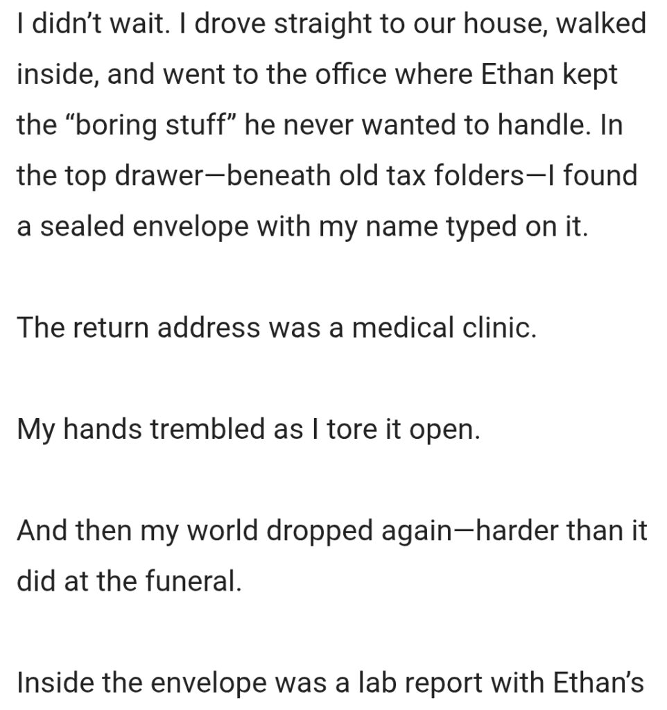 That morning, I’d stood in the chapel in a black dress that didn’t feel real, gripping the program so hard the edges tore into my palm. My mom’s photo sat beside a spray of lilies, her smile frozen in time while my chest kept collapsing and rebuilding itself in waves. I’d kept looking over my shoulder for Ethan, telling myself traffic was bad, his phone was dead, anything.