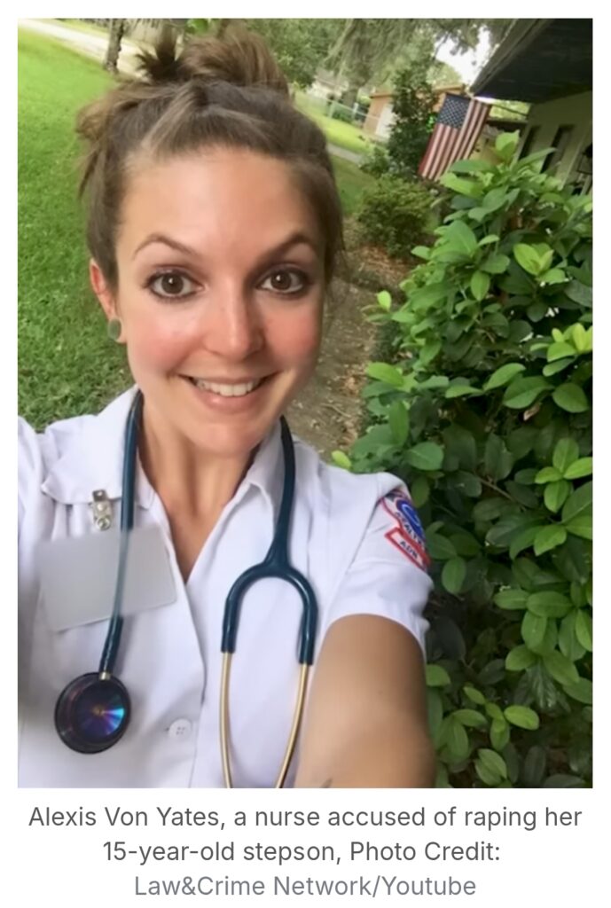 A Florida nurse has lost her medical license after state officials say she engaged in disturbing sexual conduct with her 15-year-old stepson over the summer.Authorities allege that 34-year-old Alexis Von Yates of Ocala committed the abuse in July 2024 while the teen was visiting his father in Florida. According to the Marion County Sheriff’s Office, the allegations came to light after an anonymous tipster contacted police on July 30, claiming the boy’s father had walked in and witnessed part of the encounter.