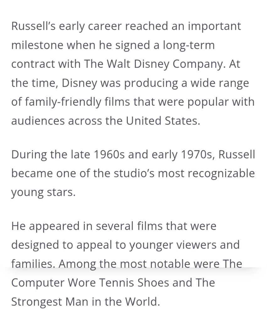 These movies helped establish Russell as a familiar face in American households. His energetic performances and approachable personality made him especially popular with younger audiences.However, being associated with family comedies also presented a challenge. As Russell matured, he wanted to demonstrate that he could handle more serious roles.Like many actors who begin their careers as children, he eventually faced the task of redefining his image as an adult performer.