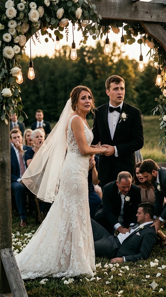 The tragedy didn’t come from the sky, though the storm was its herald.As they began their vows, the wind picked up with a sudden, violent ferocity. The white hydrangeas were ripped from their stakes, tumbling across the grass like lost spirits.