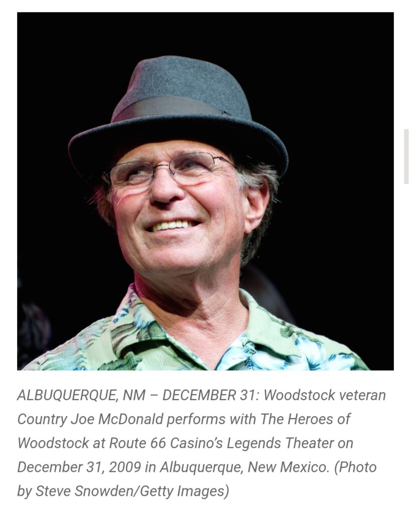 Renowned country singer-songwriter and Woodstock icon “Country Joe” McDonald, who emerged as a defining voice of the 1960s protest movement, has passed away. He was 84 years old.