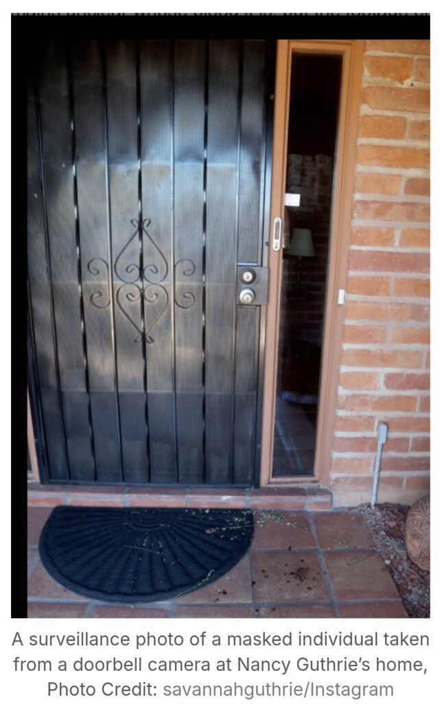 She suggested the possibility that an accomplice could have gained access to the home beforehand, with the person outside acting as backup during the removal of Guthrie. In her view, the suspect at the door may have been positioned to assist once the victim was brought out.