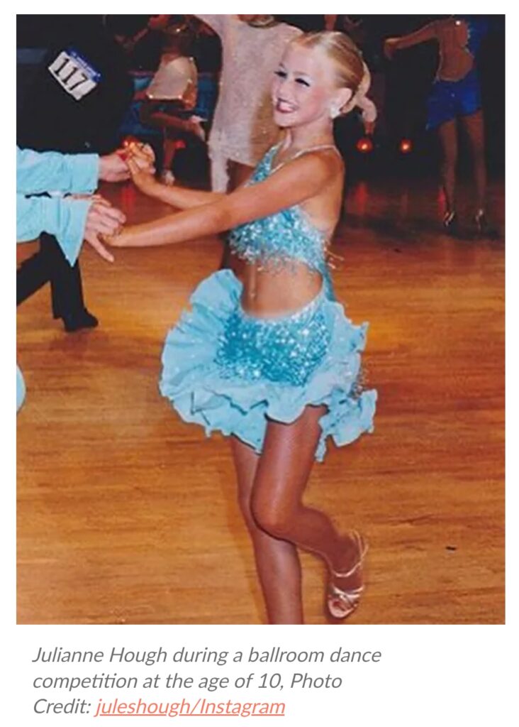 From a young age, it was clear she had extraordinary talent.By nine, she was competing seriously. By ten, her life took another dramatic turn.After her parents’ divorce, Hough was sent thousands of miles away to London to attend the prestigious Italia Conti Academy. At an age when most children were still playing with toys, she was navigating public transportation alone and training in a demanding adult environment.